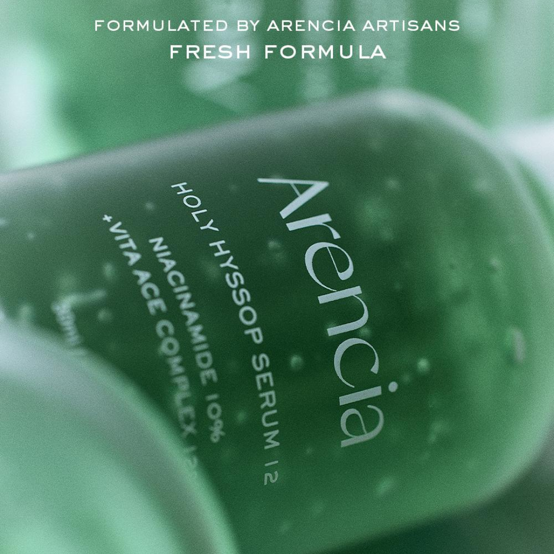 ARENCIA Holy Hyssop Serum 12 is a brightening and anti-aging serum designed to target uneven skin tone and reduce dark spots. Infused with Niacinamide, Arbutin, and Kojic Acid, it helps lighten hyperpigmentation and enhance radiance. The formula contains Hyssop Extract, Sodium Hyaluronate, and powerful peptides like Copper Tripeptide-1 and Acetyl Hexapeptide-8 to boost skin elasticity and smooth fine lines. Enriched with Ceramide NP, it strengthens the skin barrier and locks in moisture, while antioxidants like Vitamin C derivatives and Tocopherol protect and revitalize the skin. This serum is suitable for all skin types and leaves your skin hydrated, firm, and glowing.