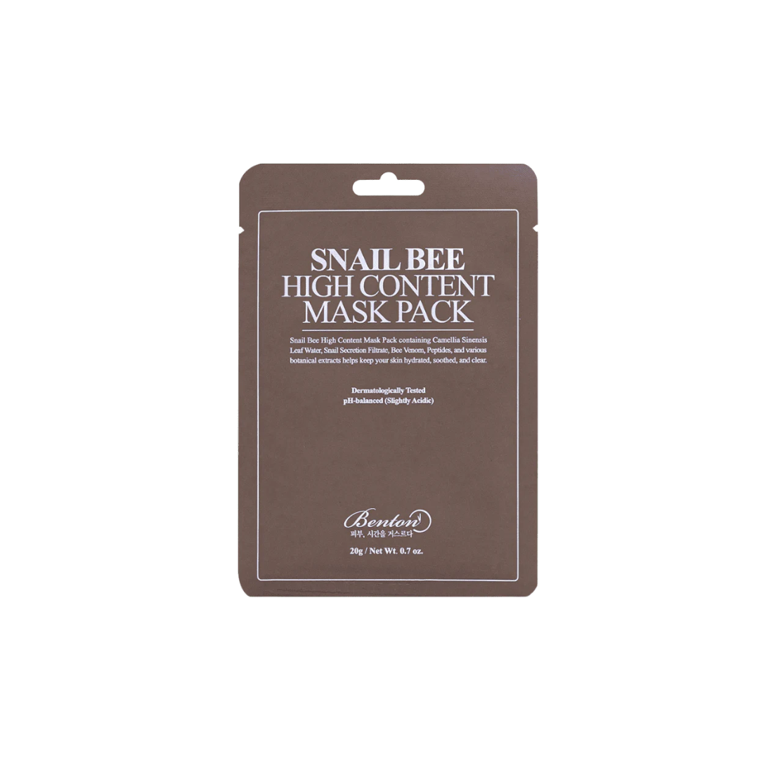 BENTON Snail Bee High Content Mask Pack is formulated with Snail Secretion Filtrate and Bee Venom to hydrate, soothe, and rejuvenate the skin. Enriched with Camellia Sinensis Leaf Water, Niacinamide, and a blend of peptides, it helps improve skin texture, brighten the complexion, and reduce the appearance of fine lines. Infused with calming ingredients like Aloe Vera Extract and Allantoin, this mask is ideal for restoring moisture and vitality, leaving your skin smooth, nourished, and radiant. Perfect for sensitive and troubled skin.