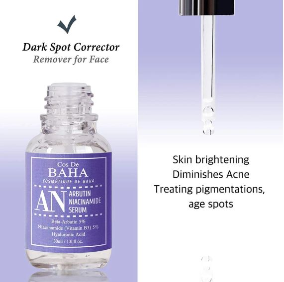 COS DE BAHA (AN) Arbutin 5% + Niacinamide 5% Serum is designed for all skin types looking to brighten and even out skin tone. This powerful serum combines 5% Arbutin and 5% Niacinamide, which work together to reduce hyperpigmentation and enhance skin clarity. The addition of Aloe Barbadensis Leaf Extract and Sodium Hyaluronate provides deep hydration, while botanical extracts like Witch Hazel and Rosemary soothe and protect the skin. Ideal for daily use, this serum helps achieve a more radiant and uniform complexion.