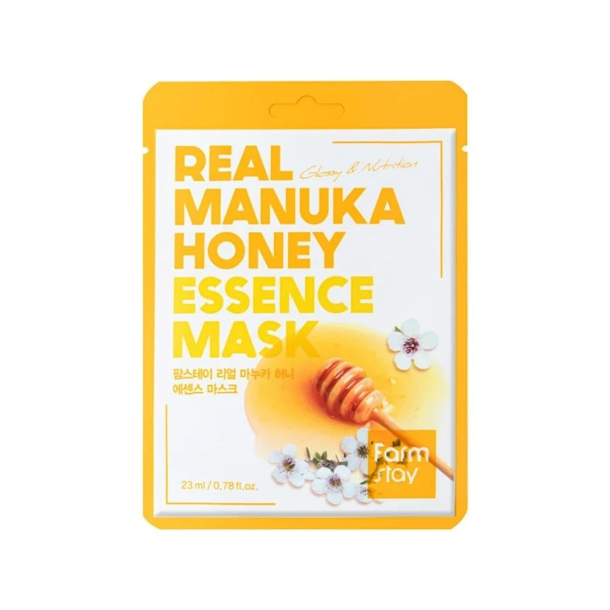 FARM STAY Real Manuka Honey Essence Mask is designed to deeply nourish and revitalize your skin. Infused with real Manuka Honey and Leptospermum Scoparium Leaf Extract, this mask provides intense hydration and soothing benefits. Additional extracts of Green Tea, Witch Hazel, and Centella Asiatica work to calm irritation and reduce redness, while Chamomile and Rosa Centifolia help to brighten and even skin tone. Perfect for restoring moisture and promoting a healthy, glowing complexion, this mask is ideal for all skin types looking for a boost of nourishment.