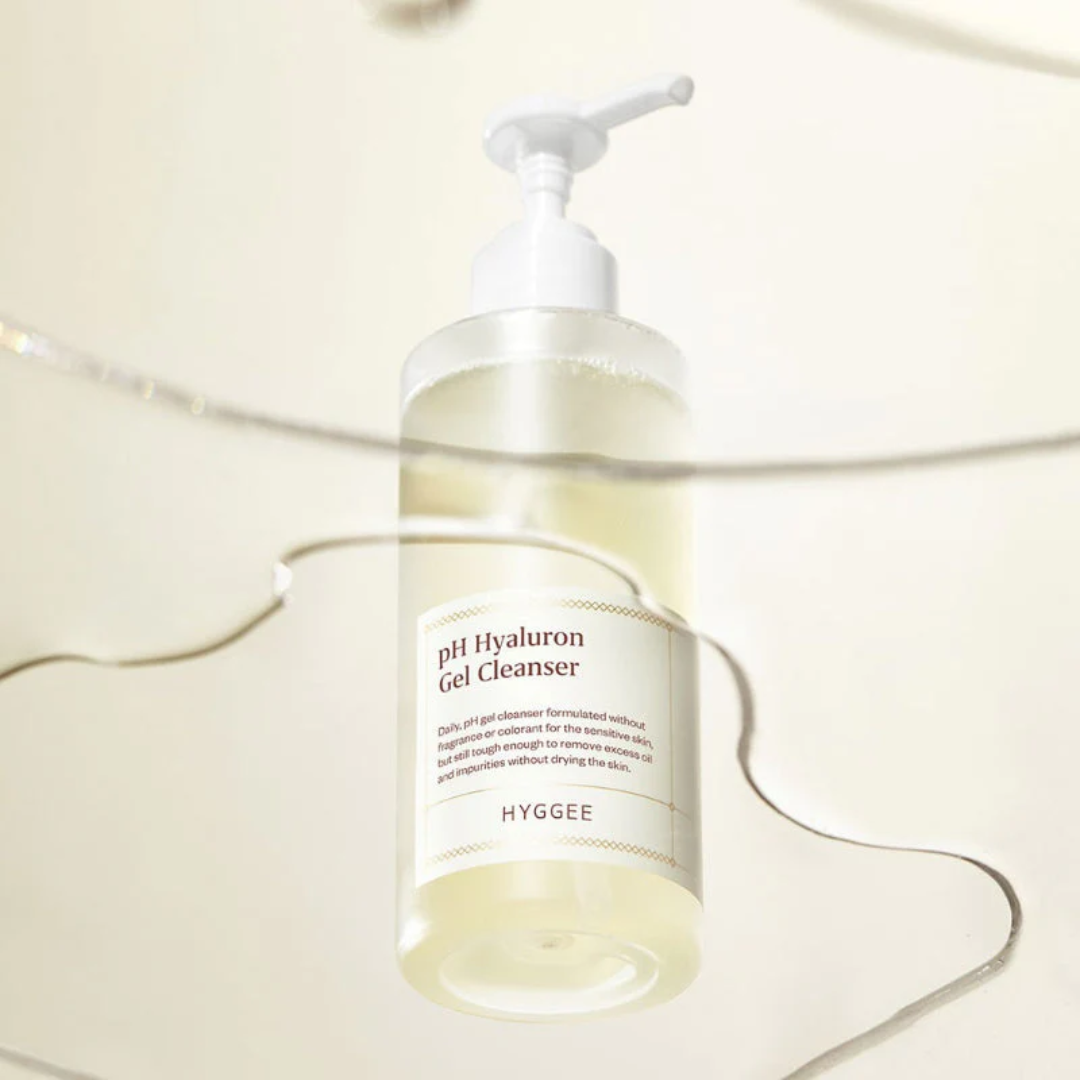 HYGGEE pH Hyaluron Gel Cleanser is a gentle, hydrating cleanser formulated to maintain your skin's natural balance. Featuring Sodium Hyaluronate and a blend of nourishing oils like Evening Primrose, Jojoba, and Meadowfoam, it effectively cleanses without stripping moisture. Infused with Centella Asiatica Extract and Chamomile Flower Extract, this cleanser soothes and calms the skin, making it ideal for sensitive types. Its low-pH formula supports the skin barrier while leaving your skin soft, clean, and refreshed. Perfect for daily use to promote a hydrated and balanced complexion.