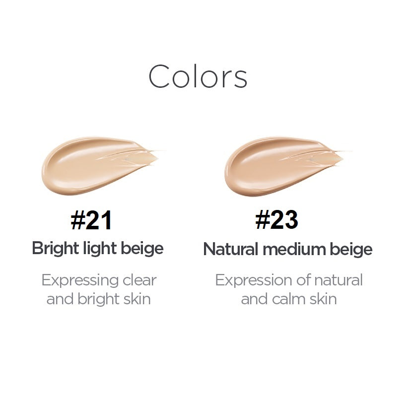 [21] Cyclopentasiloxane, Titanium Dioxide (CI 77891), Chondrus Crispus Extract, Plankton Extract, Sea Whip Extract, Jania Rubens Extract, Ethylhexyl Methoxycinnamate, Phenyl Trimethicone, Zinc Oxide (CI77947), Ethylhexyl Salicylate, Glycerin, Lauryl PEG-10 Tris Trimethylsiloxy)silylethyl Dimethicone, Trimethylsiloxysilicate, Butylene Glycol, Butylene Glycol Dicaprylate/Dicaprate, Methyl Trimethicone, Niacinamide, Pentylene Glycol, Hydrolyzed Collagen (10ppm), Hydrolyzed Pearl (9.8ppm), Sodium Hyaluronate, Acrylates/Stearyl Acrylate/Dimethicone Methacrylate Copolymer, Magnesium Sulfate, Dimethicone, Caprylyl Methicone, Cetyl PEG/PPG-10/1 Dimethicone, Aluminum Hydroxide, Synthetic Fluorphlogopite, Stearic Acid, Dimethicone/Vinyl Dimethicone Crosspolymer, Triethoxycaprylylsilane, Ethylhexylglycerin, Adenosine, Water, Dimethicone Crosspolymer, Hydrogenated Castor Oil Isostearate, 1,2-Hexanediol, Polyglutamic Acid, Disodium EDTA, Phenoxyethanol, Fragrance (Parfum), Iron Oxides (CI 77492), Iron Oxides (CI 77491), Iron Oxides (CI 77499)