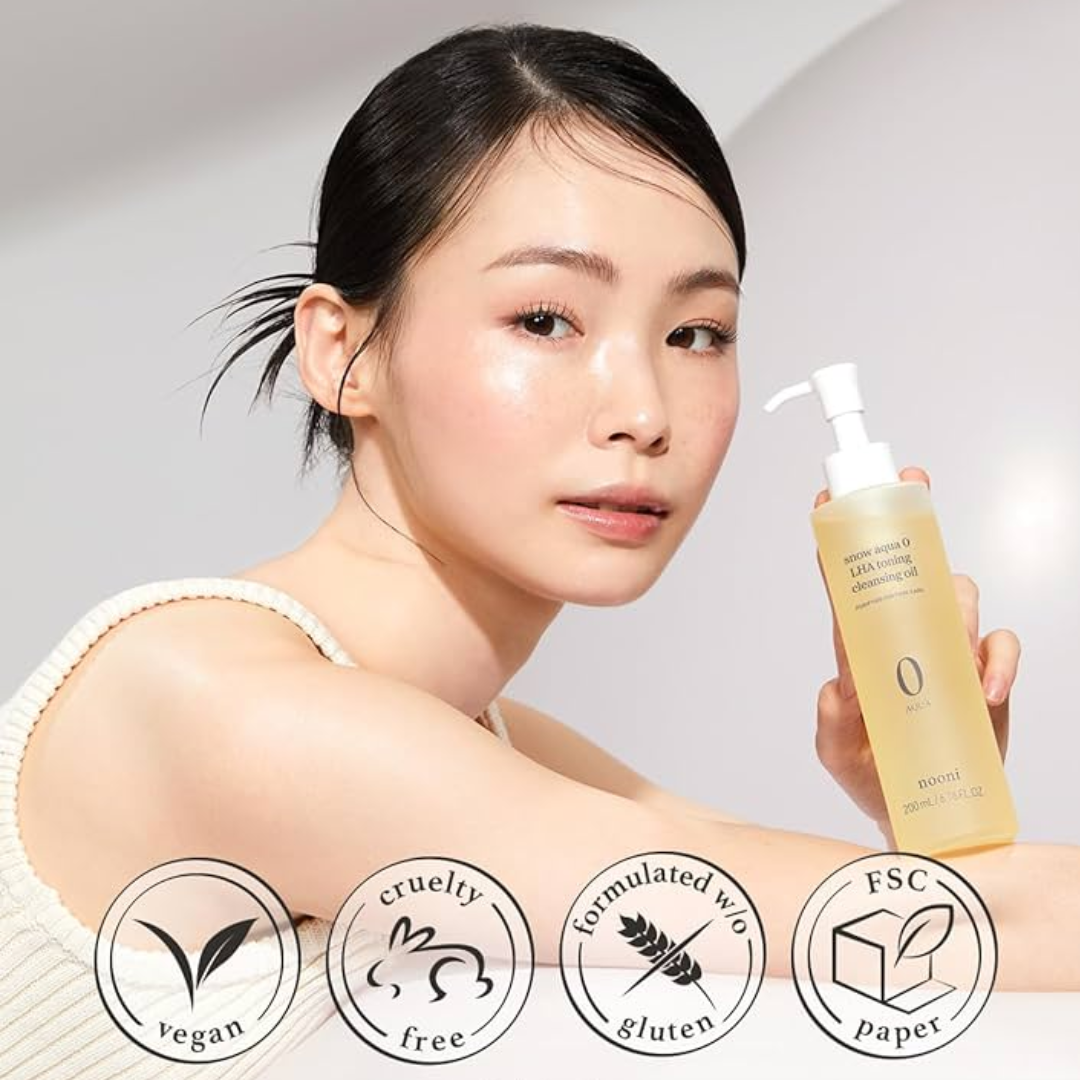 NOONI Snow Aqua 0 LHA Toning Cleansing Oil is a refreshing, oil-based cleanser designed to remove makeup, impurities, and excess oil while gently exfoliating the skin. Formulated with Capryloyl Salicylic Acid (LHA), it helps to clear clogged pores and smooth the skin’s texture. Infused with nourishing oils such as Grape Seed, Olive, and Macadamia Seed Oil, it hydrates and balances the skin without leaving a greasy residue. The addition of Orange and Lime Peel Oils provides a fresh, citrus scent while offering brightening benefits. Suitable for all skin types, this cleansing oil leaves the skin clean, smooth, and radiant.