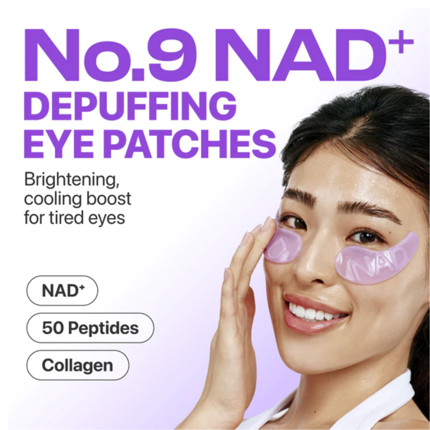 NUMBUZIN No.9 NAD+ Collagen Under Eye Patches are designed to deeply nourish, firm, and refresh the delicate under-eye area. Formulated with fast-absorbing 300 Da Collagen, NAD+, and a powerful complex of peptides, these hydrogel patches help plump fine lines, brighten dark circles, and improve elasticity. Caffeine and cooling ingredients visibly reduce puffiness while providing an instant refreshing effect. Ideal for tired, dull, or mature skin, these patches leave the under-eye area smoother, firmer, and more revitalized.