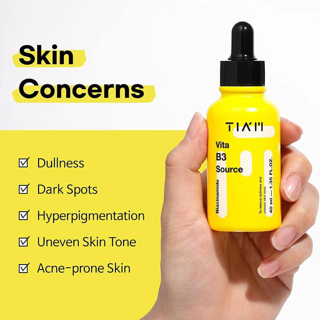 TIAM Vita B3 Source is a dual brightening serum powered by 10% Niacinamide and 2% Arbutin to visibly fade dark spots, improve uneven tone, and restore radiance. Enriched with Sodium Hyaluronate and Allantoin, it hydrates and soothes the skin, while botanical extracts provide additional antioxidant care. With its lightweight texture, this serum leaves the complexion clearer, brighter, and more balanced.