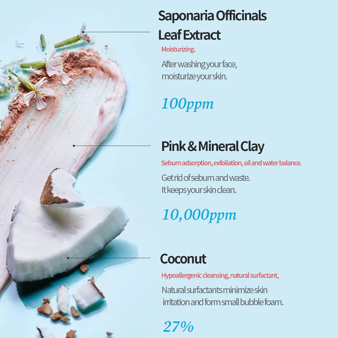 Water, Glycerin, Hydrogenated Palm Acid, Potassium Hydroxide, Potassium Cocoate, Bentonite, Glyceryl Stearate, Butylene Glycol, Polyquaternium-7, Acrylates/C10-30 Alkyl Acrylate Crosspolymer, Calamine, Sodium Phytate, Sodium Benzoate, Saponaria Officinalis Leaf Extract, EDTA, CI 14700.