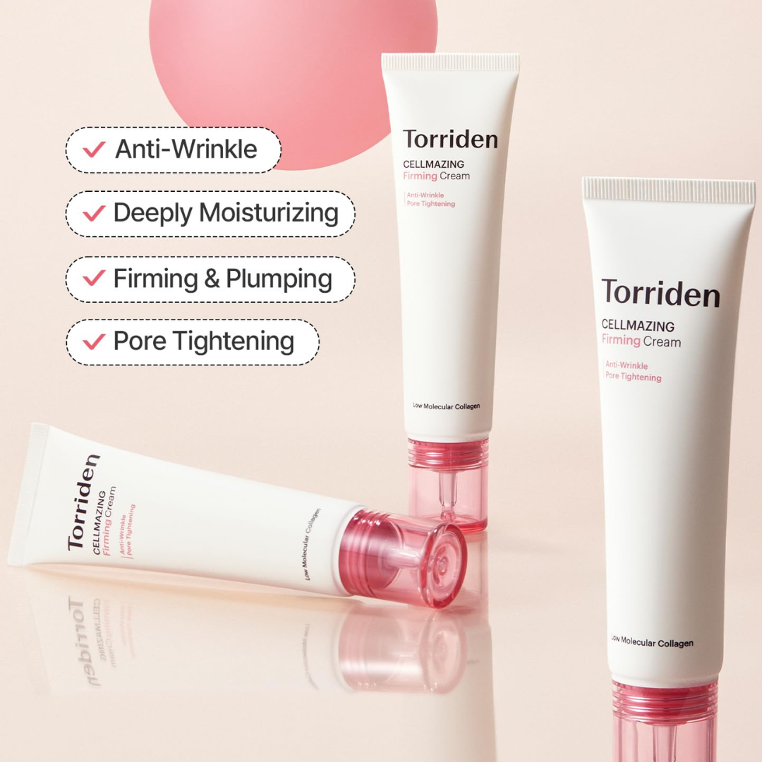TORRIDEN Cellmazing Firming Cream is a collagen-rich moisturizer crafted to boost skin elasticity and firmness. With 30,520 ppm of Collagen Extract, plus Hydrolyzed Collagen and Collagen Amino Acids, this cream nourishes deeply to improve skin texture and resilience. Niacinamide and Hyaluronic Acid provide hydration and brightening, while Panthenol and Allantoin soothe and strengthen the skin barrier. Perfect for those seeking a plumper, smoother complexion, this cream delivers a firming, rejuvenated look to the skin.